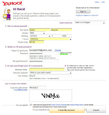 1. Sign ini di yahoo seperti langkah 1 diatas.